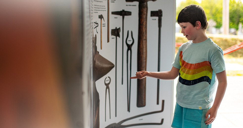 The renovated and re-roofed building was opened to the public in 2002 with the full range of metal forming tools, the most important of those being the anvil, hammer, bellows, furnace and a range of hand tools such as tongs and punches. In 2016 a heritage centre was constructed and in 2019 the project was completed with the instillation of 20 visually stimulating wall panels which supplement the display of equipment and tools in the forge workshop.